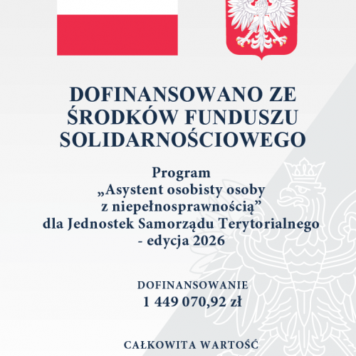 czytaj dalej na temat: Program „Asystent osobisty osoby z niepełnosprawnością” - edycja 2026.Zaproszenie na Wigilię Miejską.